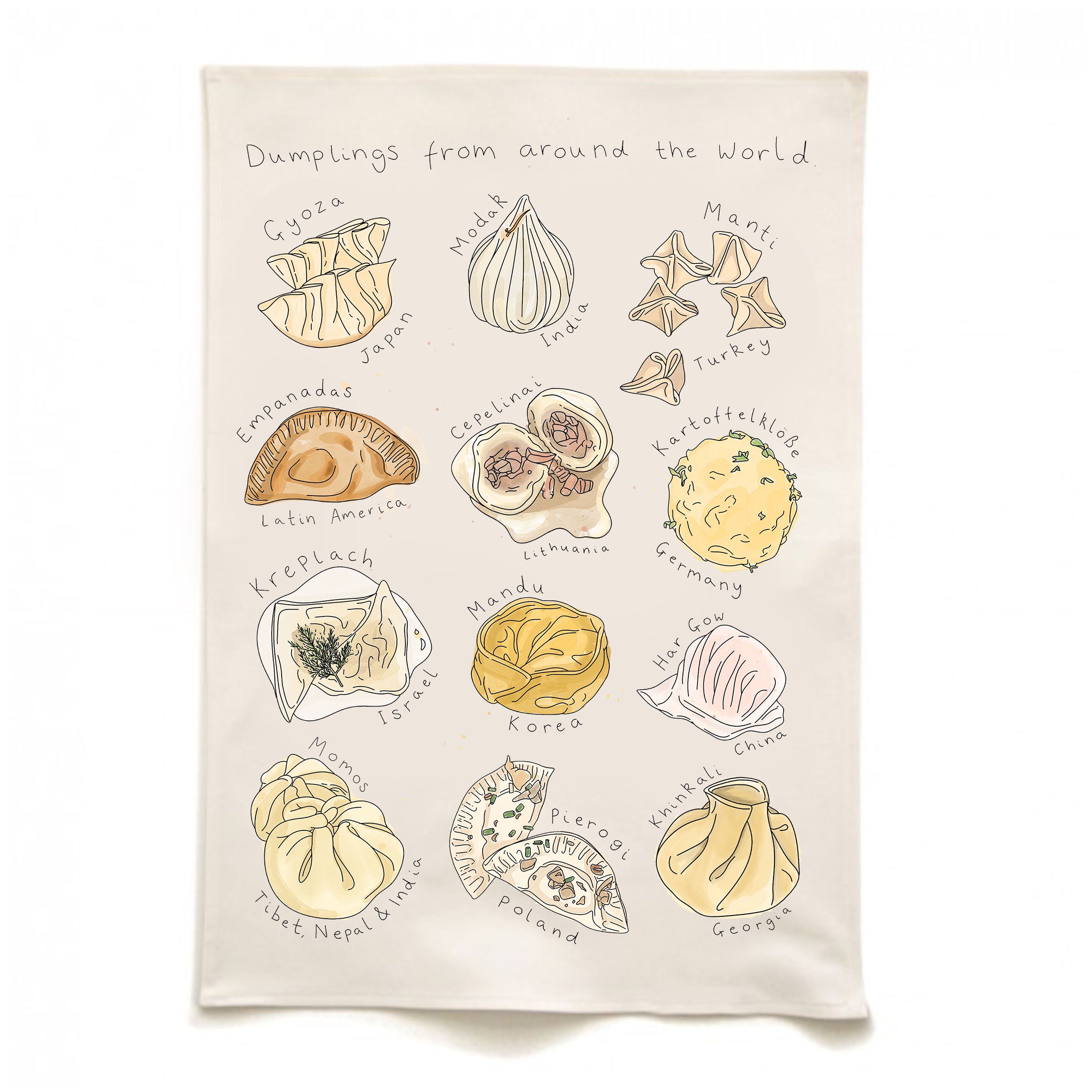 Dumplings from around the world Tea Towel